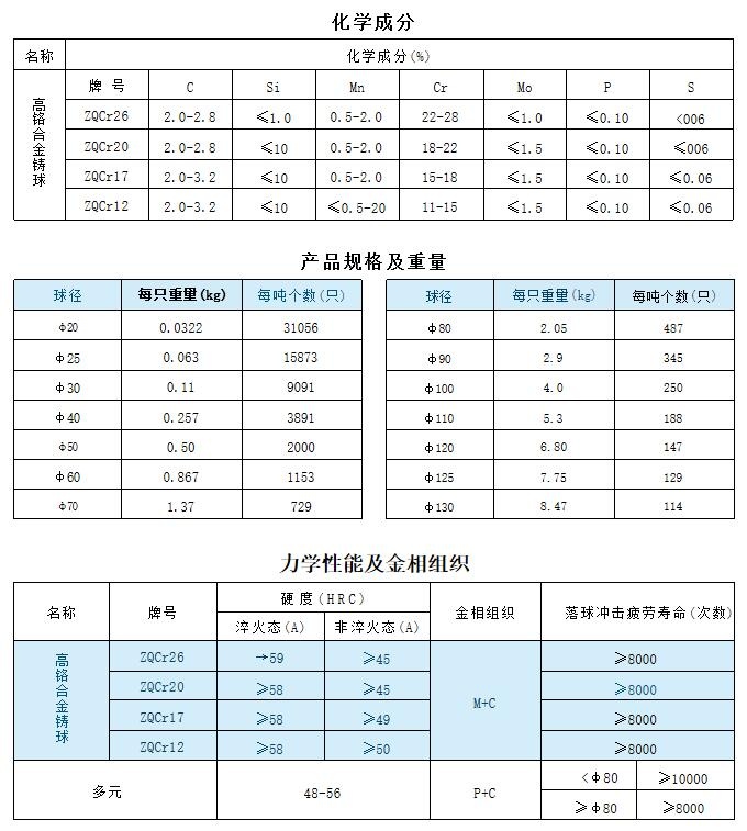 以鉻為主要合金元素的白口鑄鐵簡(jiǎn)稱(chēng)鉻合金鑄鐵,以鉻合金鑄鐵為材料的鑄造磨球稱(chēng)為鉻合金鑄鐵磨球。
